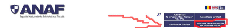 Pe anaf.ro – Depunere declaratie unica si alte formulare SPV-PF ( NU pe Autentificare utilizator).